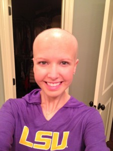 Also, Josh shaved my head on Friday morning! Up until this point, I still had a tad-bit that I could put back in tee-tiny pony tail, and I didn’t even have enough to do that, so we decided to go ahead and shave it off. It really isn’t that much different than before, because so little hair was there, but here is a pic of the bald me!